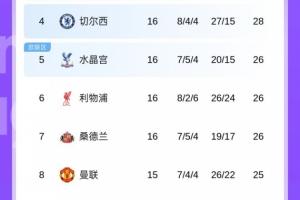 英超15轮过后,曼联7胜4平4负积25分排在第8位。本场如果能赢球,曼联将升至英超第5。