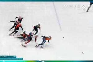 比赛中英国选手特雷西犯规,撞倒刘少昂,随后孙龙也受影响甩了出去,而且膝盖还被冰刀划伤,最终未能完赛,排名第八,刘少昂第七,英国选手被取消成绩。