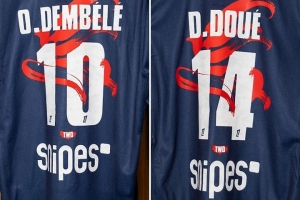 上镜的是登贝莱和杜埃的球衣,巴黎官推配文:“巴黎圣日耳曼的农历新年球衣,每处细节都蕴含力量。”