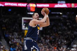 本场,约基奇出战43分钟,投篮21中15,三分6中4,罚球23中22,砍下56分16篮板15助攻2盖帽,正负值+15!