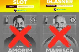 本赛季英超已颁发四座月度最佳主教练的奖杯,其中11月得主马雷斯卡于元旦当天下课,而10月最佳得主阿莫林于1月5日下课。