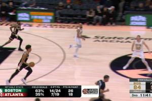 本场比赛上半场,老鹰让凯尔特人得了82分。对此,凯尔特人的解说员打趣道:“我们进了14个三分,当你防守端有特雷·杨的时候真的很难赢。噢,等等,他们是不是已经把他交易了?但我们还是半场轰了82分。特雷·杨有在看这场比赛吗?赶紧发个推特吧,就发个82加个眼球👀的表情就行了。”
