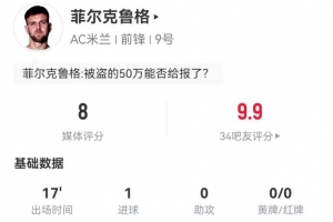 体育资讯1月19日讯 米兰在本轮意甲1-0击败莱切,菲尔克鲁格斩获处子球,本场数据如下: