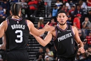 据太阳记者Shane Young统计,太阳本赛季战绩26胜17负,客场战绩12胜12负,面对胜率50%以下球队15胜4负。