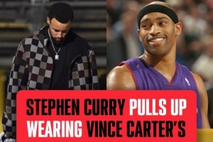 在赛前,库里穿着了和猛龙名宿文斯·卡特带火的球鞋Nike Shox BB4。
