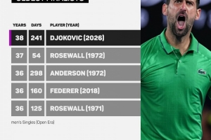 体育资讯1月30日讯 数据显示,德约科维奇是公开赛年代澳网男单决赛最年长的选手。
