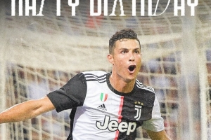 尤文官推晒照祝C罗41岁生日快乐,为球队134次出场贡献101球28助